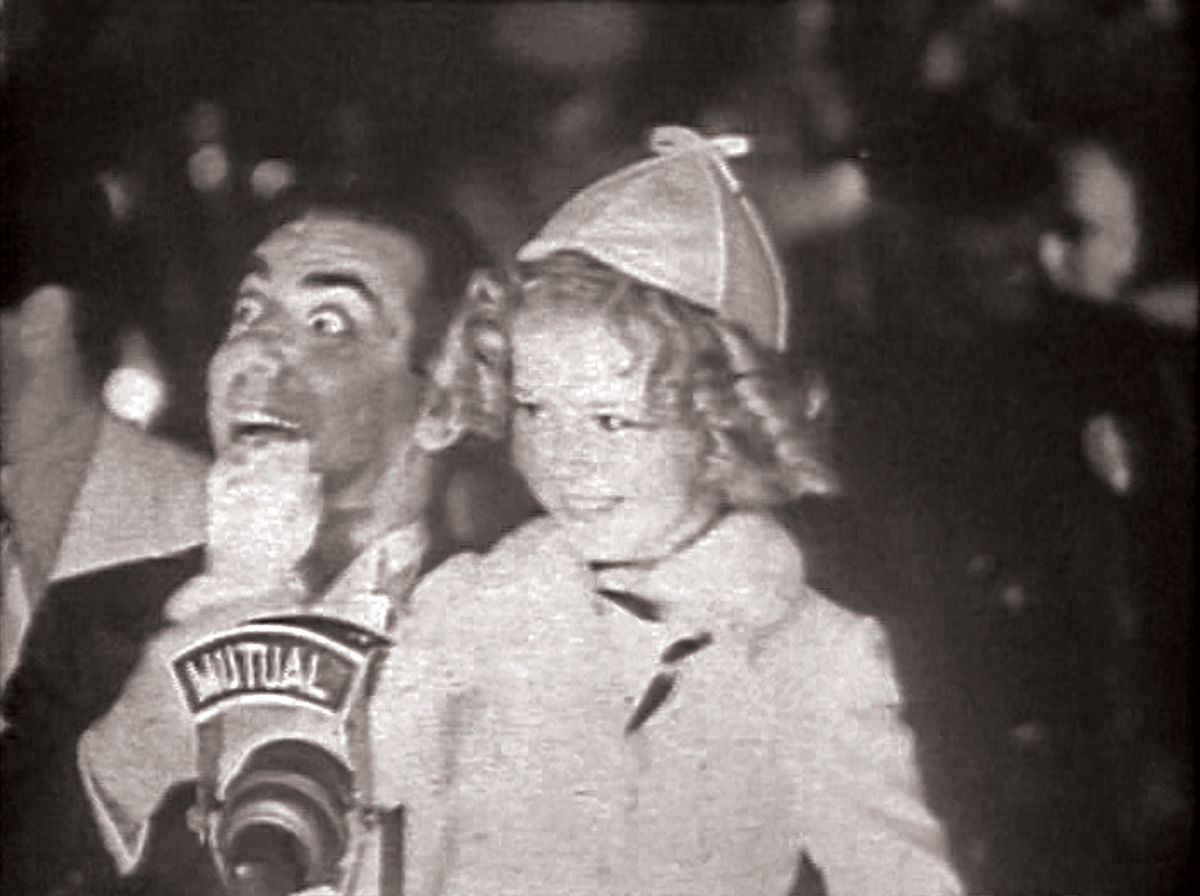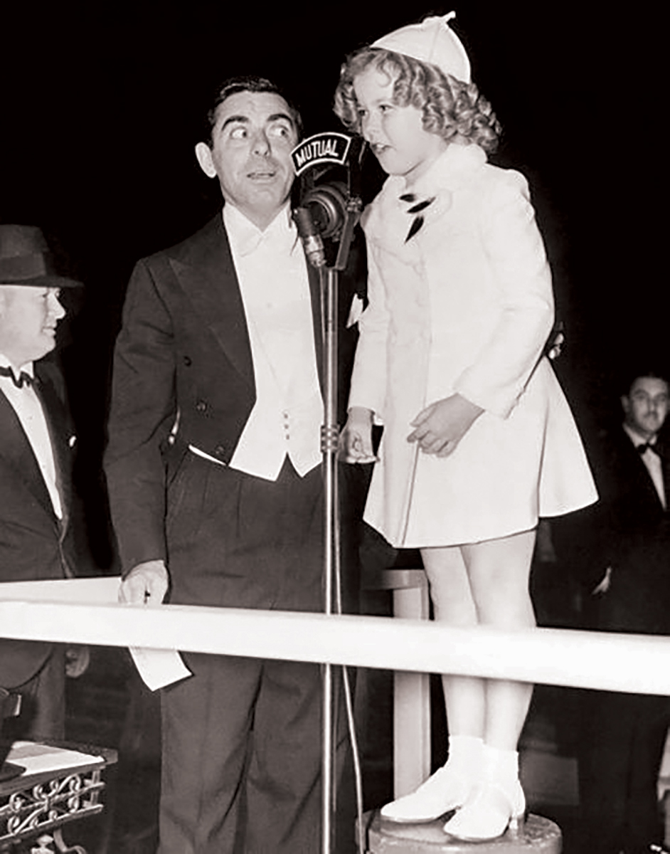 Shirley is at the microphone with Eddie Cantor, making her first national radio appearance, broadcast “live” at the premiere: