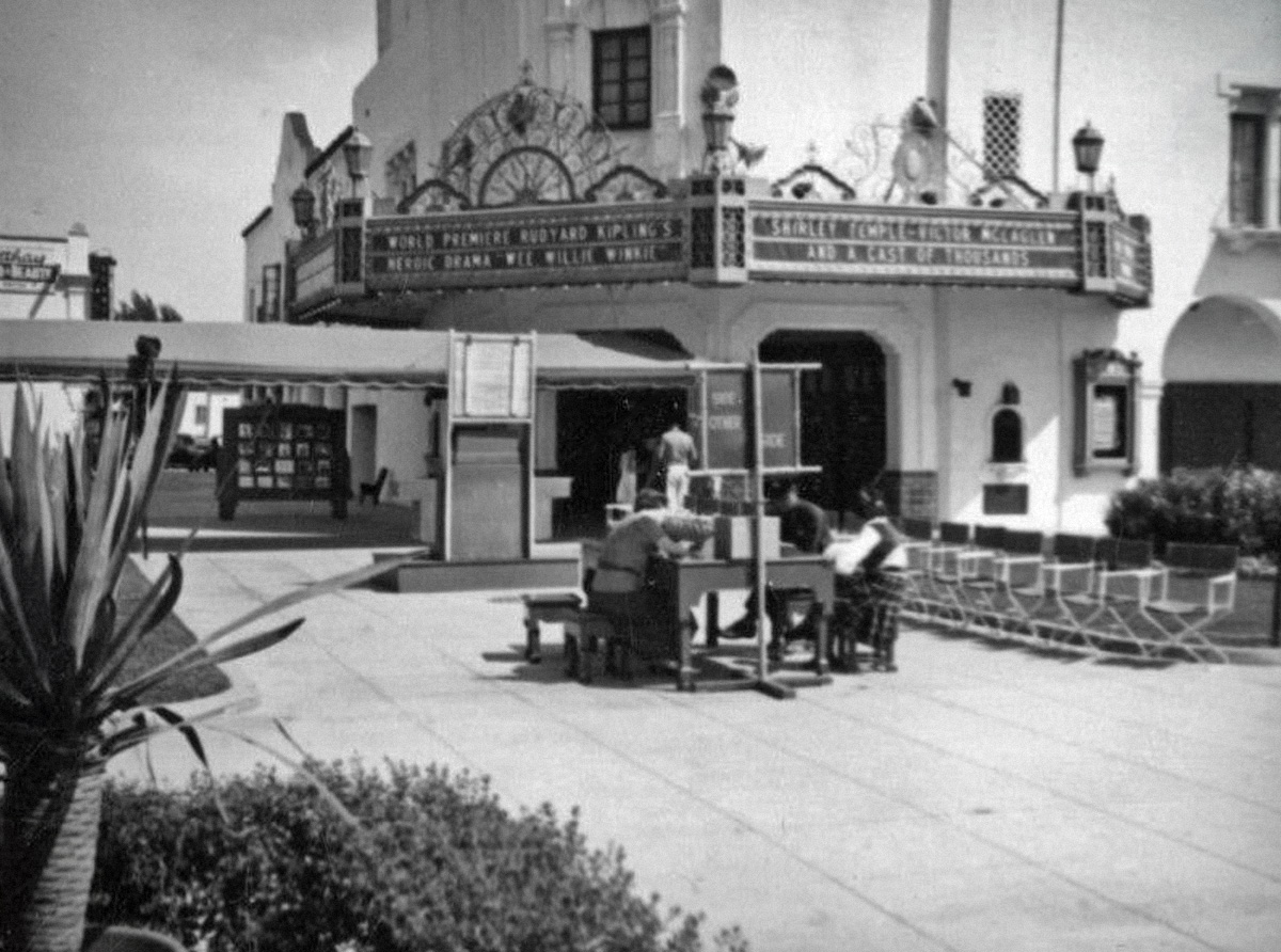 The Fox special efffects department superimposed an “Ali Baba” marquee over the one for “Wee Willie Winkie”: