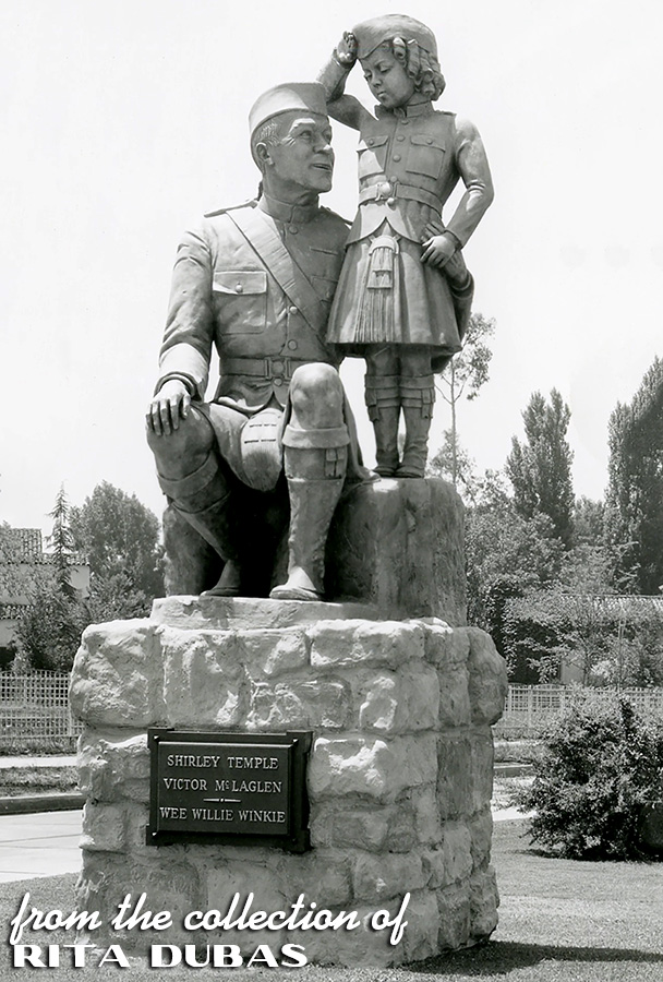 You can see the Temple/McLaglen statue in the screenshot below, taken from a video created by Shirley expert supreme Rita Dubas about the “Winkie” premiere (linked at the end of this post and a must watch!):