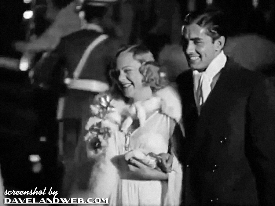 The following caption accompanied the photo below, showing the arrival of Tyrone Power and Sonja Henie:
