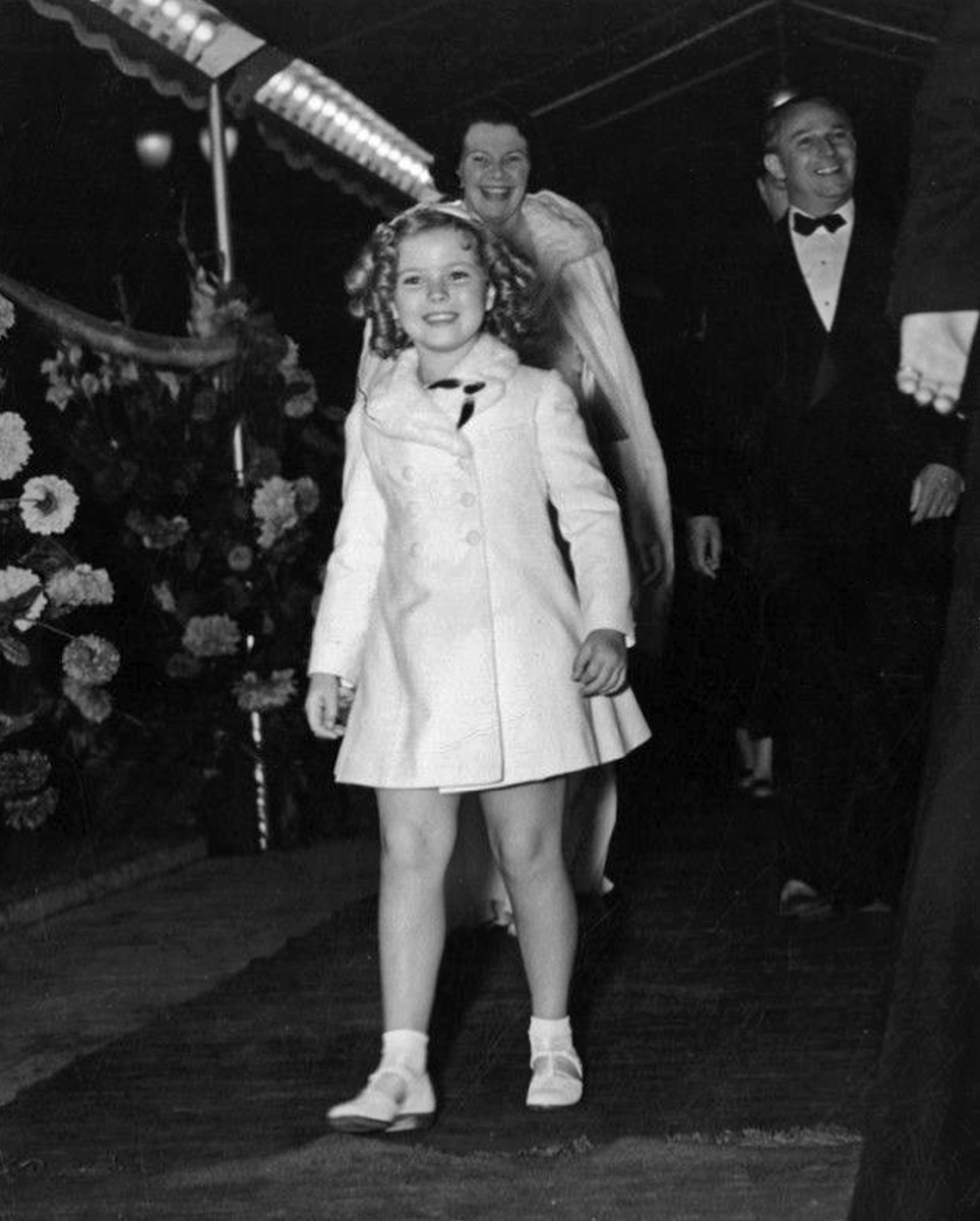 Shirley was nine years old at the time, and her parents decided it was okay for the little girl to stay up passed her regular bedtime for this special event. In the photo above, the Carthay Circle Theater is being readied for the grand premiere. Back at the Temple home that evening, trouble was brewing. As Shirley herself recalled in her autobiography, Child Star: