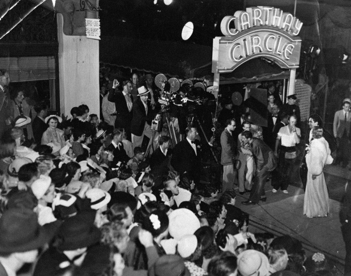 The crowds attending the premiere of “Wee Willie Winkie” at the Carthay Circle Theater Friday night probably will find themselves in the movies when “Ali Baba Goes to Town” is released. Eddie Cantor has announced that actual motion pictures for his new 20th Century-Fox picture will be filmed in front of the Carthay Circle the night of the premiere. David Butler, Eddie Cantor’s director, will make close-ups and medium shots of the crowds in the grandstands, of the crowds lining the esplanade, and those at all the vantage points outside the theater. It will not be necessary to purchase a ticket to “Wee Willie Winkie” or to be inside the theater in order to “crash the movies” on Friday night, because both Cantor and Butler intend to see that the outside crowds are photographed from every angle. Cantor will appear in some of the scenes, and thus a number of residents and non-residents of Los Angeles will not only get free screen tests, but will have the opportunity to appear with the world’s highest-priced screen comedian in actual motion and sound pictures.