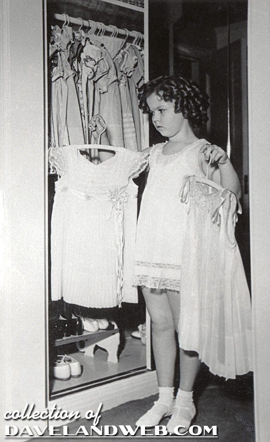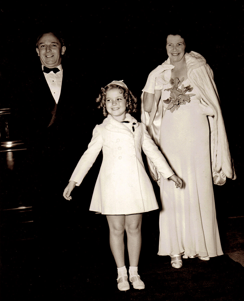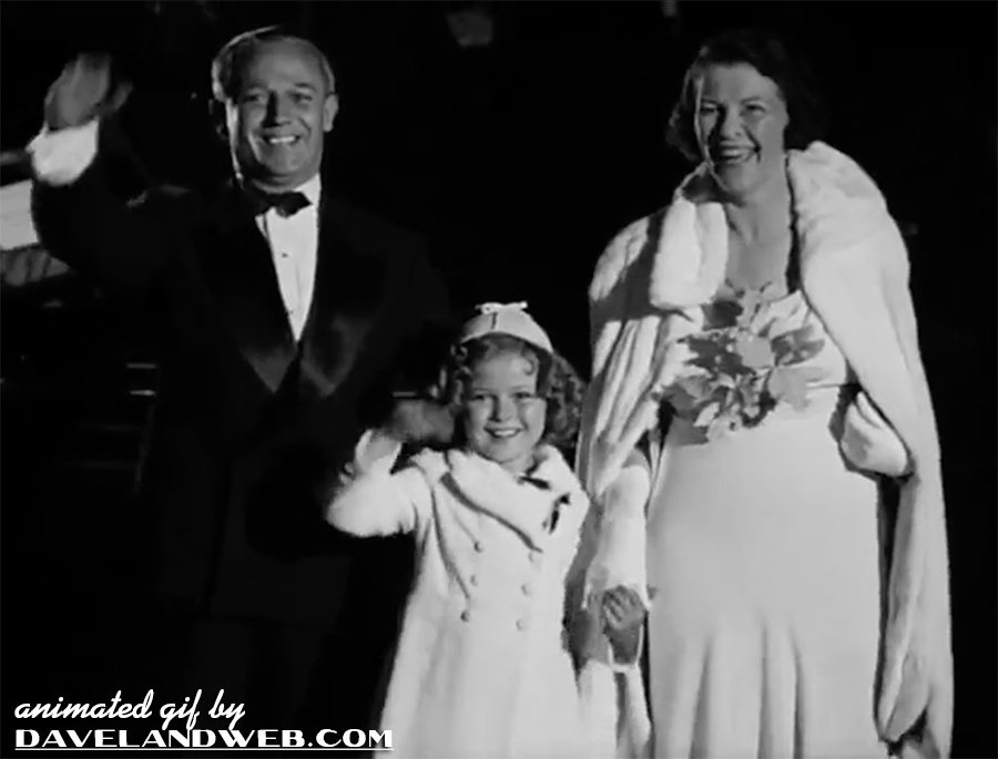 Shirley will be allowed to stay up to attend her own first premiere with her mother and father, who will give a buffet supper at their home in Brentwood following the performance. Among the Temples’ theater and supper guests will be Dr. and Mmes. Leo J. Madsen, Russell Sands, Messrs. and Mmes. Lloyd Wright, Howard Verbeck, Ralph P. Maskey, J. C. Ferguson, Allen Gwynne, Harry Beucher, Harry Isleib (father of Shirley’s stand-in), James Greever, Messrs. Jack and George Temple, Jr., Misses Hulda Anderson (Shirley’s wardrobe mistress), Frances Klampt (Shirley’s on-set teacher) and Katharine Hagan. Gene Markey (associate producer of the film) will have as his guests at the theater and later for supper at the Clover Club, Joan Bennett, Joan Crawford and Franchot Tone, Marlene Dietrich and Douglas Fairbanks, Jr., Ginger Rogers and Mr. and Mrs. David Selznick. There are many other parties planned, too numerous to mention on that gave evening.